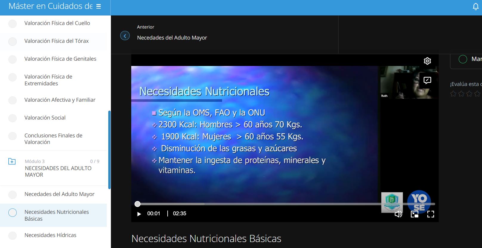 Conocer todas las necesidades de un adulto mayor como su alimentación, hidratación, movilización, su higiene, su descanso y sueño, sus cuidados de la piel, necesidades de sus relaciones afectivas y familiares, su entorno social y mucho más.